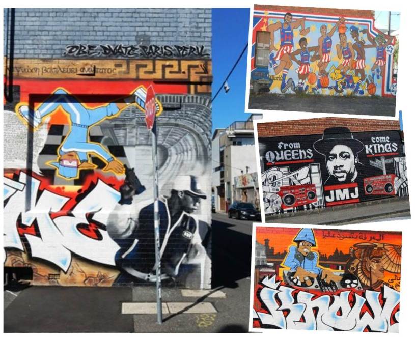 If Hosier Lane is one big fantasy street scape, then this part of Fitzroy is a throwback to the old school world of graffiti. A mixture of Hip Hop street homages and B-Boys.